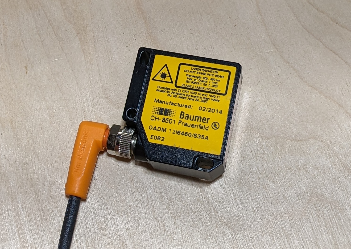The Baumer OADM SA35 has a 16mm – 120mm range with a 4 – 20 mA analog current output and 0.12mm resolution. The sensing range is programmable and with smaller sensing windows the resolution can reach 2 microns. This project will utilize the maximum sensing range.
